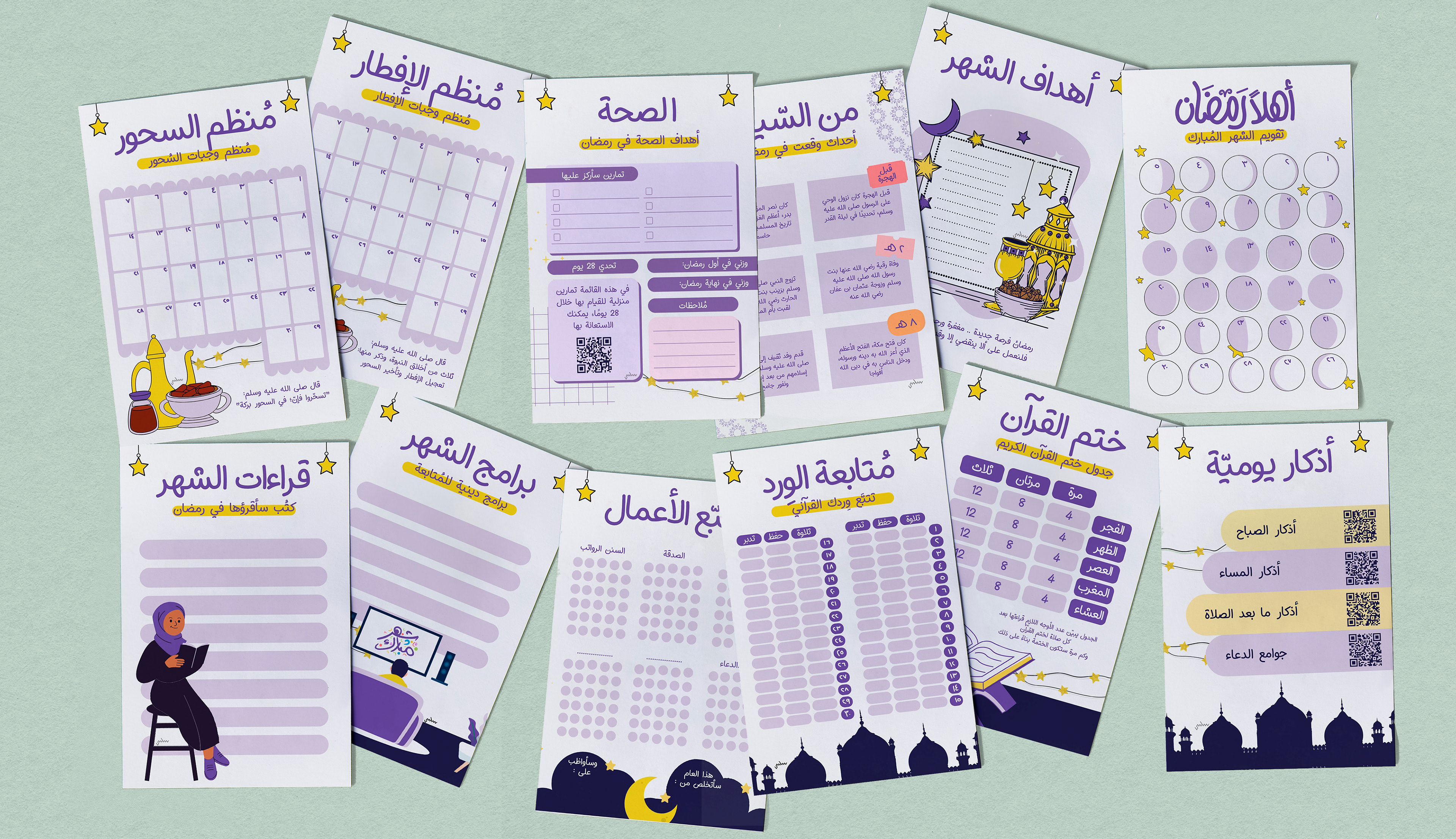 Hello! This Ramadan Planner is designed to help you organize and plan your days during this holy month. It includes various pages such as fasting and prayer schedules, supplication and charity lists, as well as spaces for recording daily notes and reflections. With its beautiful and practical design, the planner saves you time and effort in organizing your activities and effectively managing your time during this auspicious month. Professional design software such as Adobe Photoshop and Adobe Illustrator were used to create this unique planner. The focus was on providing an enjoyable and user-friendly visual experience, making the planner an inspiring tool for individuals looking to organize and achieve their goals during Ramadan. Get ready to embrace the month of Ramadan with focus and organization with the Ramadan Planner, and enjoy achieving your spiritual and personal goals during this blessed time.